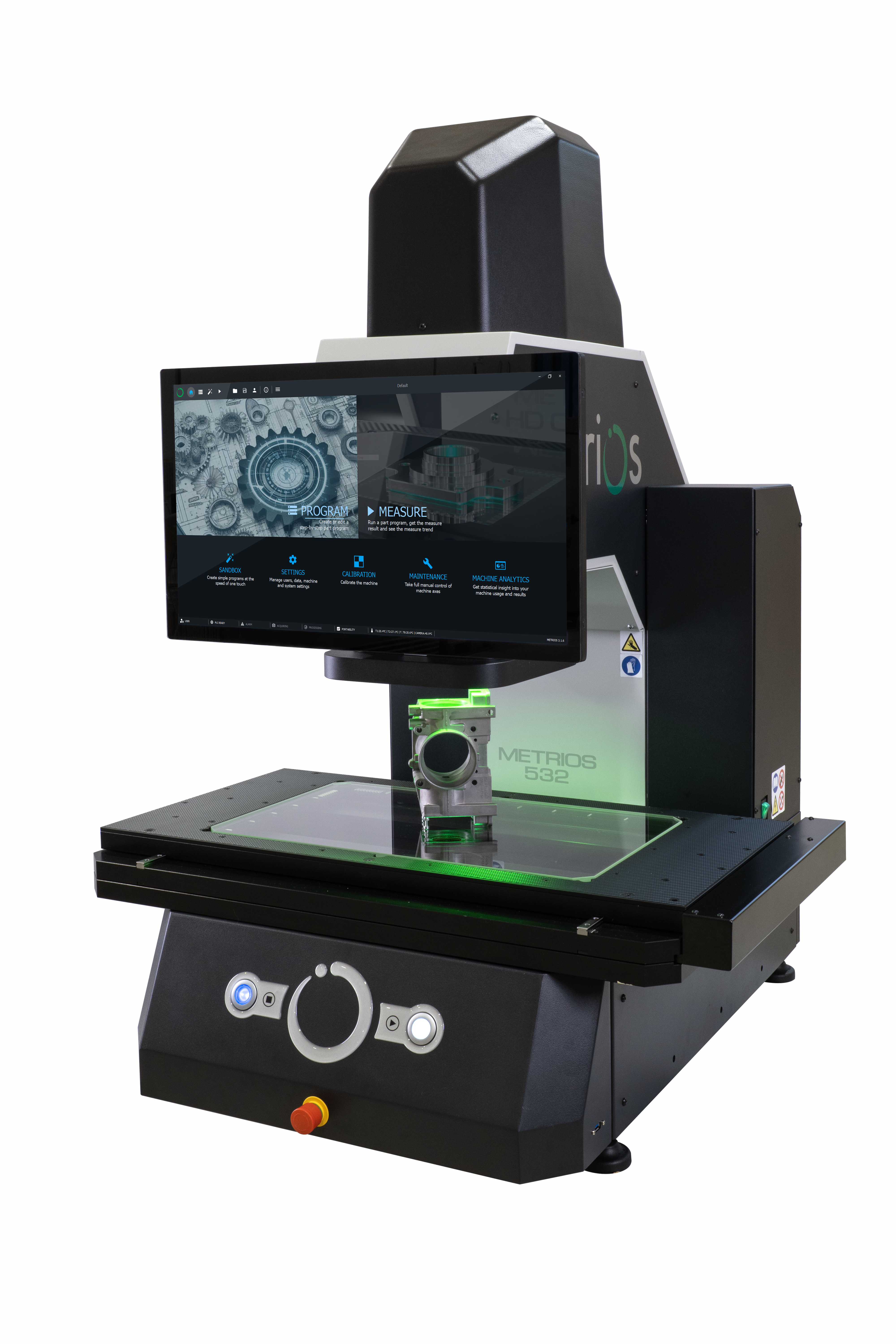 METRIOS 532 je moderní optický měřicí přístroj navržený pro rychlou, přesnou a plně automatizovanou kontrolu rozměrů přímo ve výrobním provozu. Kombinuje rychlost a jednoduchost vizuálních měřicích systémů s přesností a schopnostmi multisenzorové metrologie v jediném kompaktním dílenském řešení. Díky velkému měřicímu rozsahu, automatickému rozpoznání dílů a pokročilému systému osvětlení umožňuje objektivní a opakovatelné měření bez vlivu obsluhy či okolních podmínek.